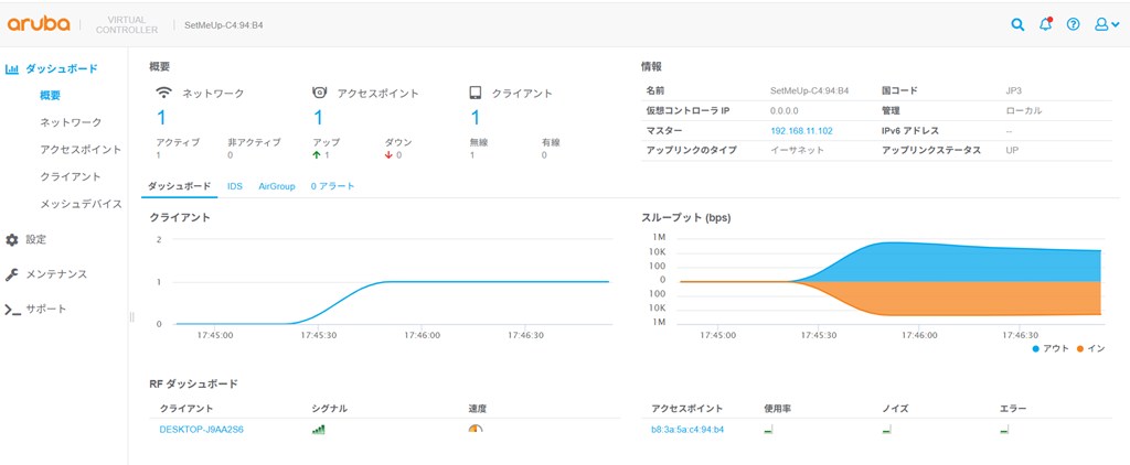 Arubaのアクセスポイント(AOS8)はとてもセッティングしやすく、PoE+スイッチを持っておられる方にとっては良い選択肢になると思います。