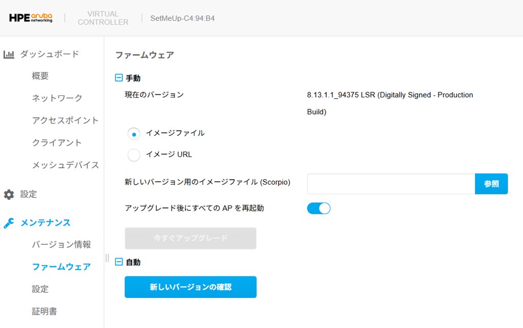 ファームウェア本体は[ArubaInstant_******_8.10.0.21_*****]のような表記になっているものです。