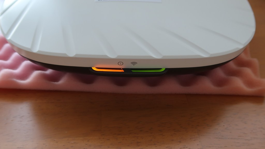 電源ランプが点灯(橙または緑)、無線ランプが点滅(1秒おき)になれば、APはDHCPでアドレスを入手出来ているので、WiFi経由でのセットアップが開始できます。