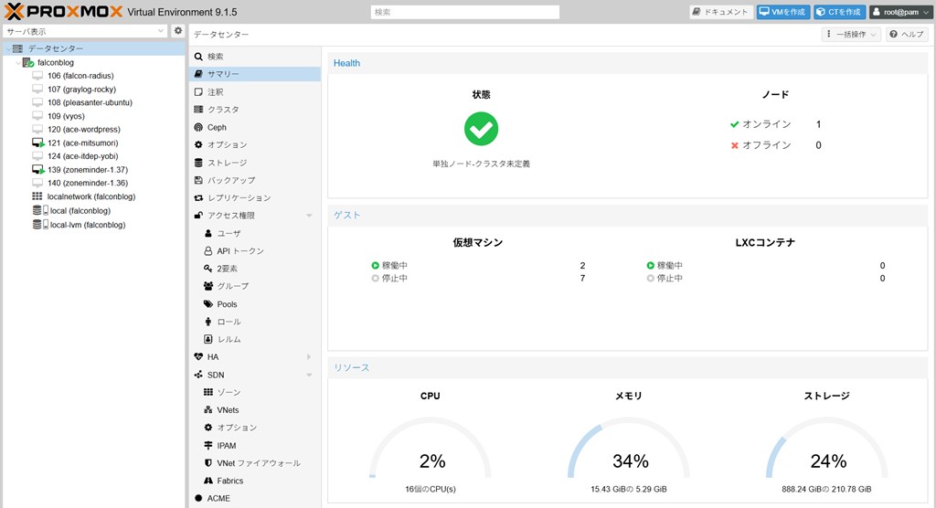 Proxmox VE8で稼働している仮想サーバーを公式の手順通りにVE9にバージョンアップしました。
