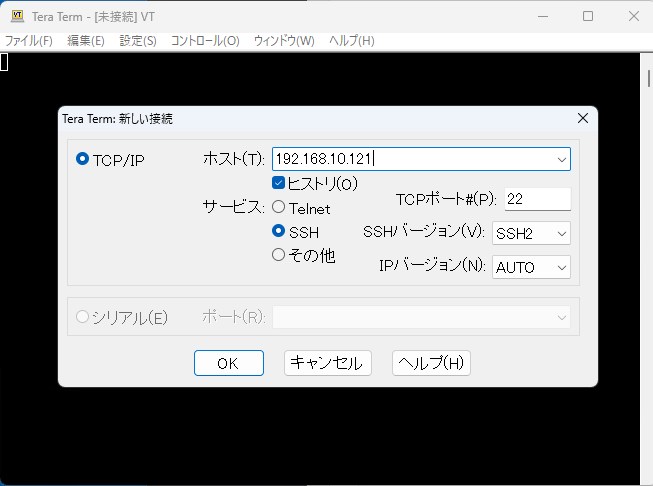 Windows端末からteratermというフリーソフトでSSH接続を行います。