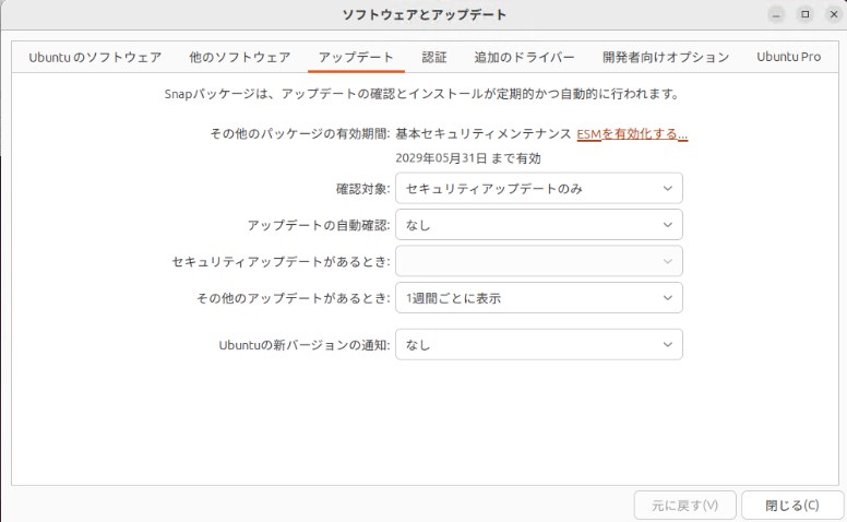 ソフトウェア自動更新設定:イントラネット内で動かすため、自動更新はすべてオフにします。
