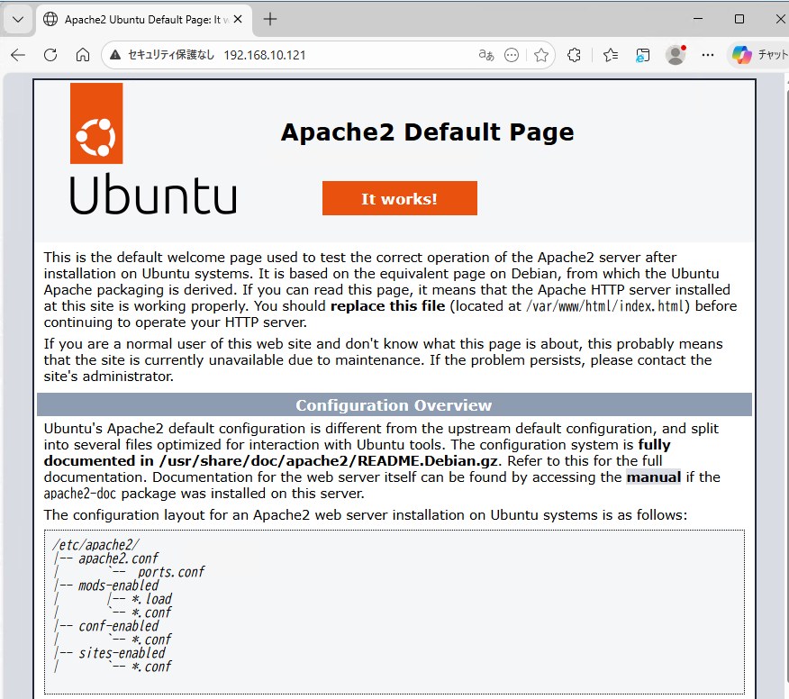 以下のデフォルトページが表示されればapacheのインストールは完了です。
